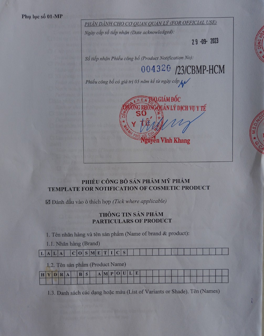 | Tên sản phẩm | Hydra B5 Ampoule |